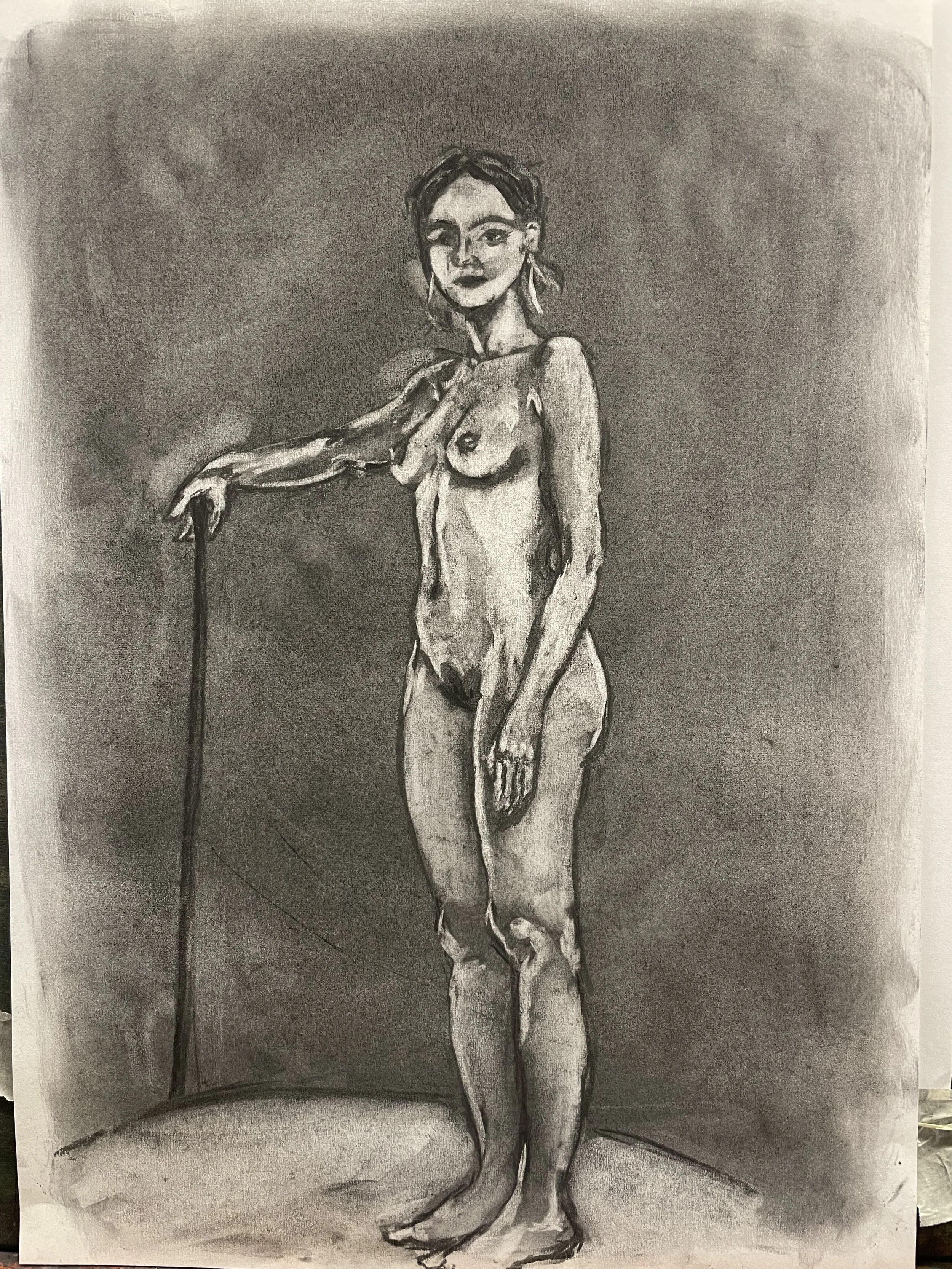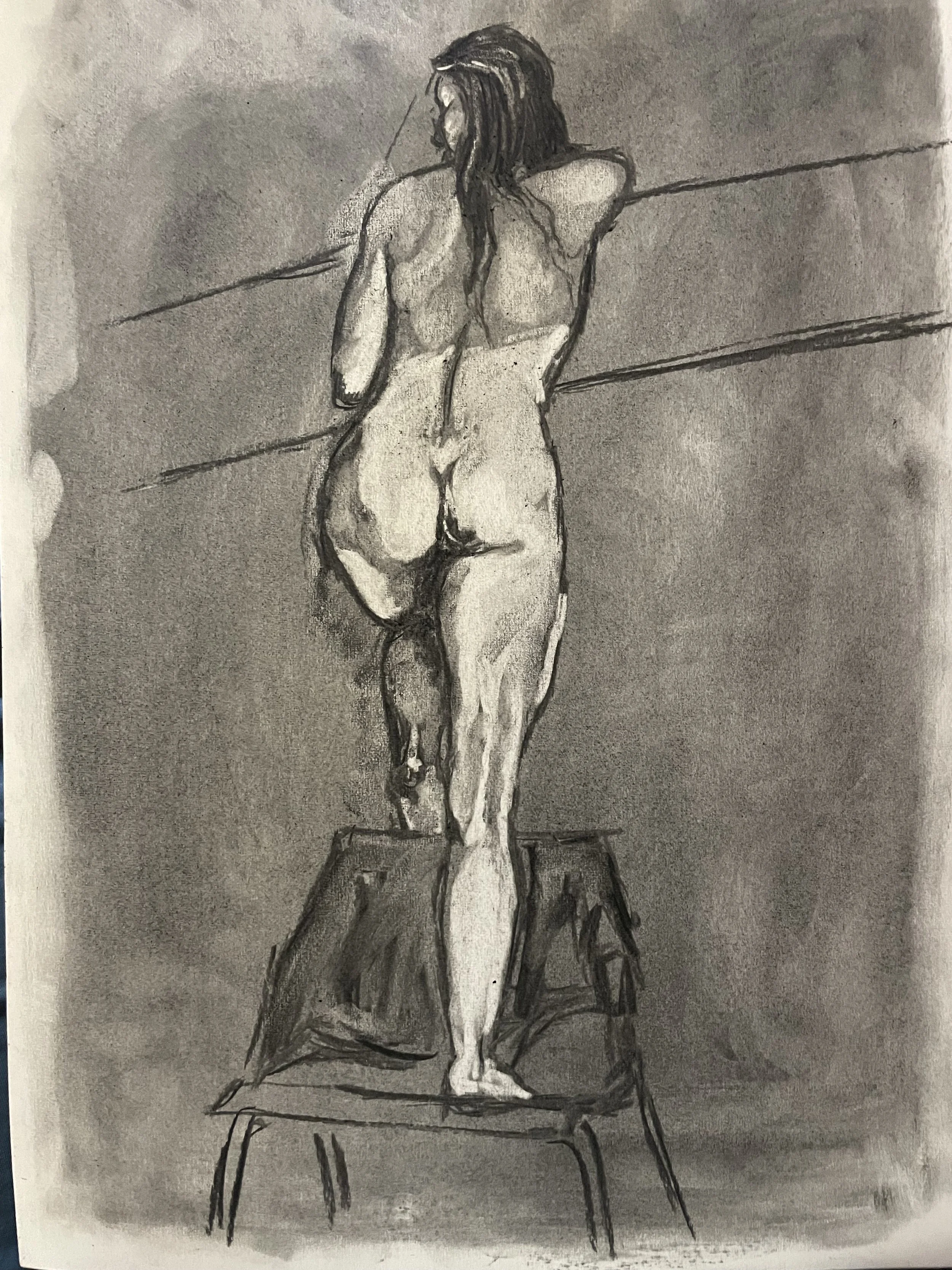 UNTITLED LIVE-FIGURE DRAWING, 2023. CHARCOAL ON PAPER. 18 X 12 IN.
